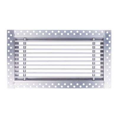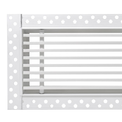 Данная решетка подходит для монтажа на любую поверхность под финишную отделку. Рама оснащена «полкой» 1,9 мм и рифлеными краями для большей адгезии финишного материала – шпатлевки, цемента. Решетка имеет съемную центральную часть с декоративным экраном. Она крепится к корпусу прочными металлическими тросиками, легко снимается для очистки и удобного обслуживания.