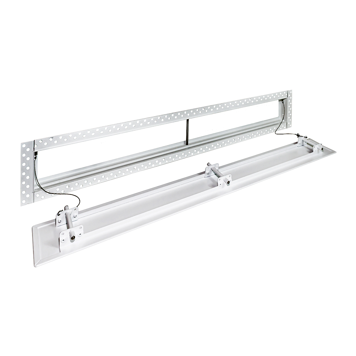 Данная решетка подходит для монтажа на любую поверхность под финишную отделку. Рама оснащена «полкой» 1,9 мм и рифлеными краями для большей адгезии финишного материала – шпатлевки, цемента. Решетка имеет съемную центральную часть с декоративным экраном. Она крепится к корпусу прочными металлическими тросиками, легко снимается для очистки и удобного обслуживания.