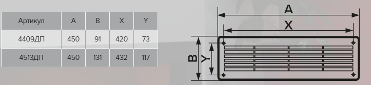 Решетка вентиляционная переточная 450х91, комплект 2 шт.