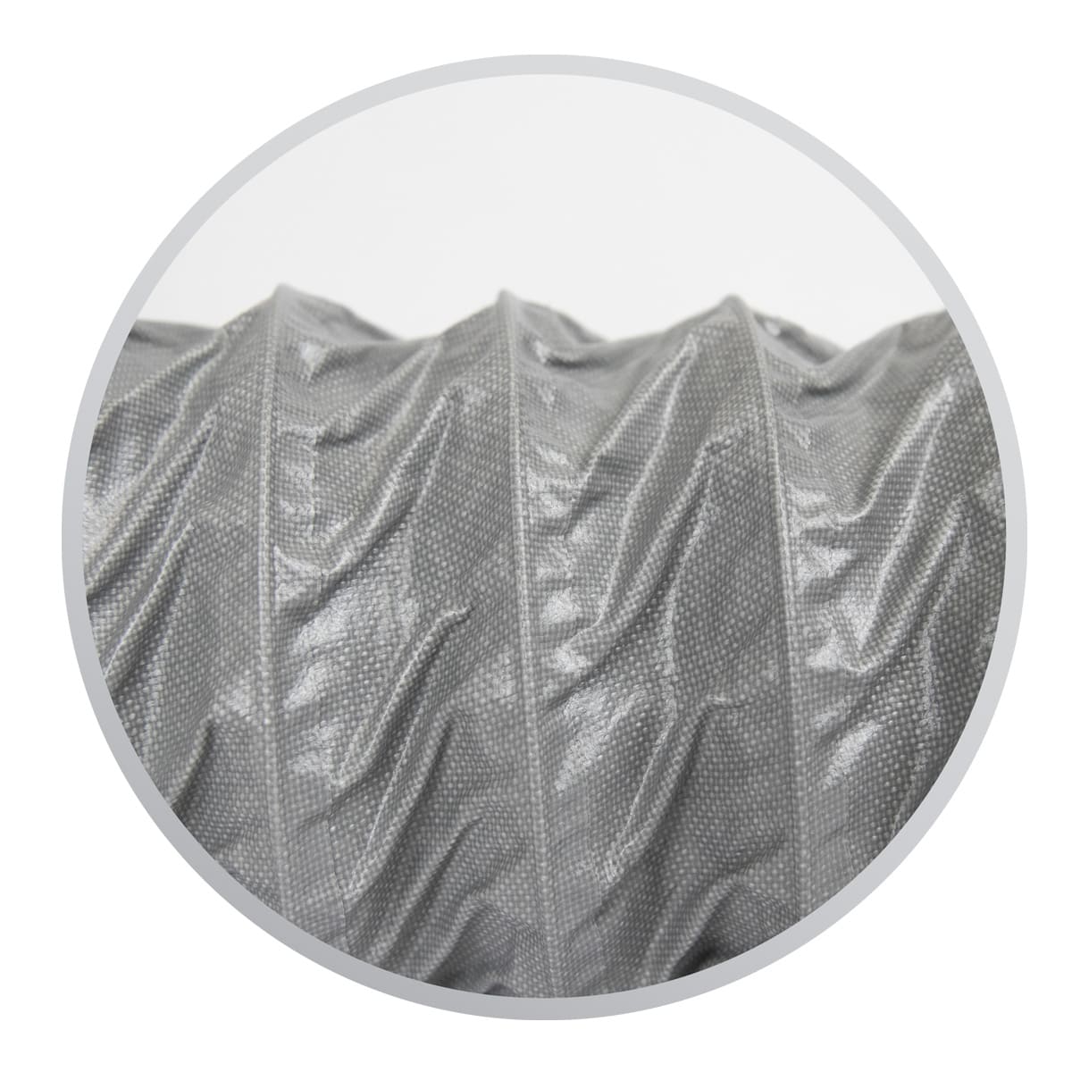 Greydec 200 являются усиленными полимерными воздуховодами, устойчивыми к механическим воздействиям. Воздуховоды изготовлены из прочной ткани из стекловолокна, с обеих сторон покрытой полимерным слоем. Стальная спираль впаяна в ткань.