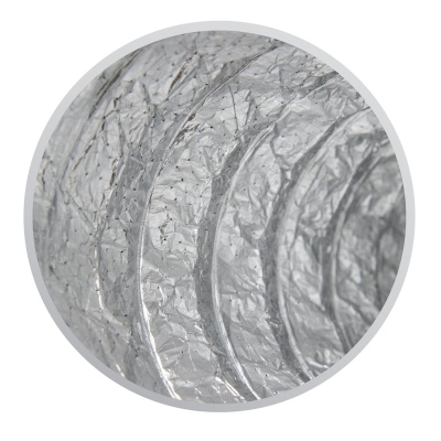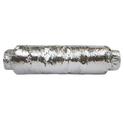Шумоизоляционный слой без стыков, волокно имеет равномерный нахлест. При монтаже он не раскрывается, не образуются незащищенные зоны. Как следствие не ухудшается качество звукоизоляции.Наружный слой из алюминия, ламинированного полиэстером, надежно защищает изоляционный материал и внутренний воздуховод от деформации, нарушения целостности.