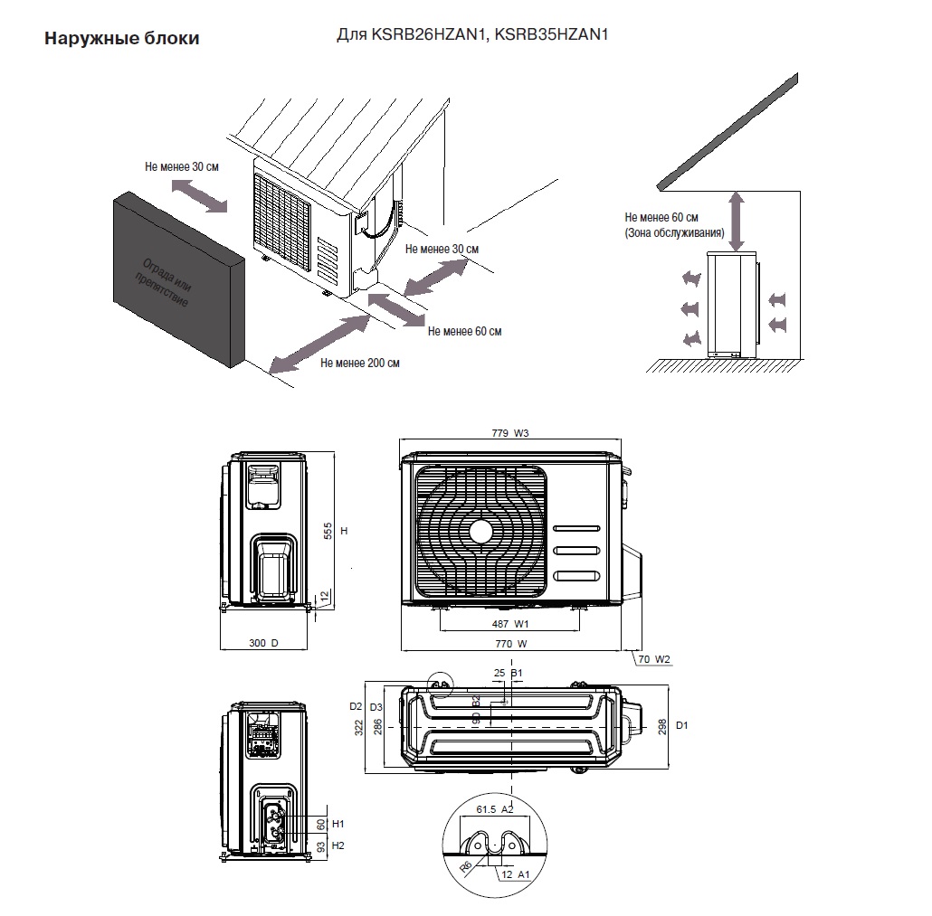 Размер внешнего блока (ШxВxГ), мм